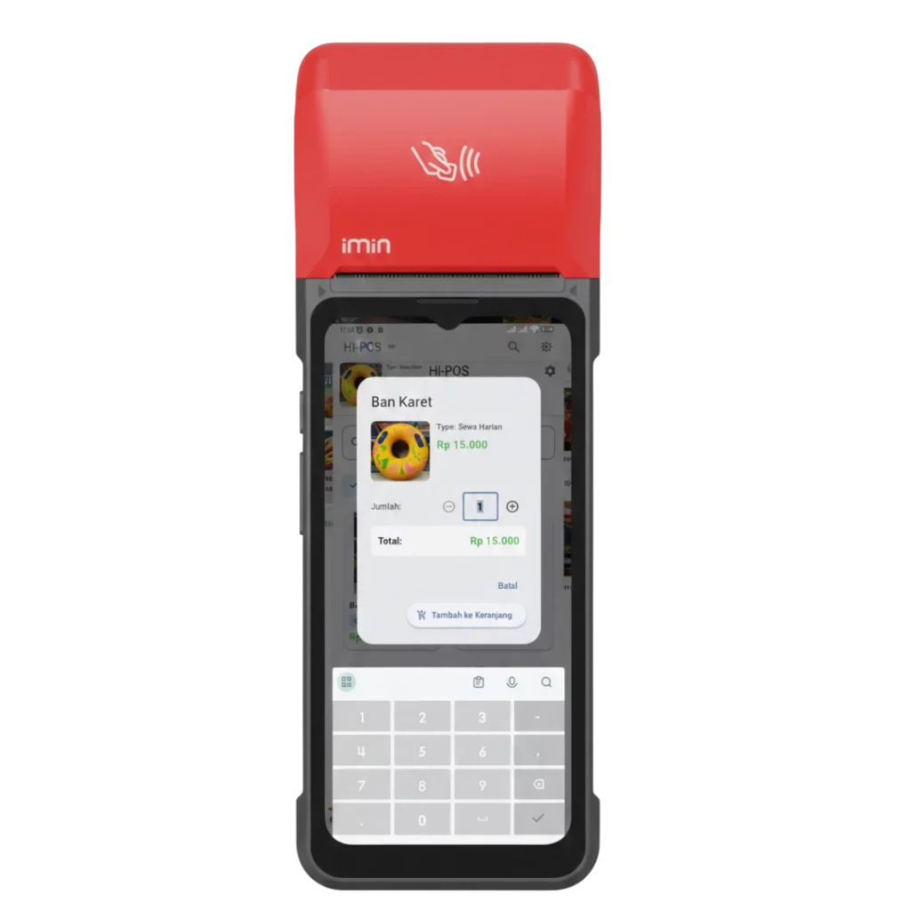 Perangkat Mobile POS berbasis Android yang berfungsi sebagai kasir portabel.